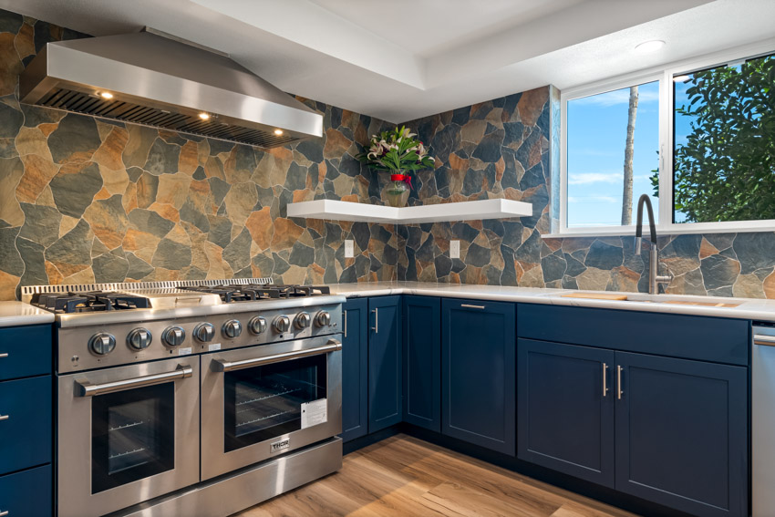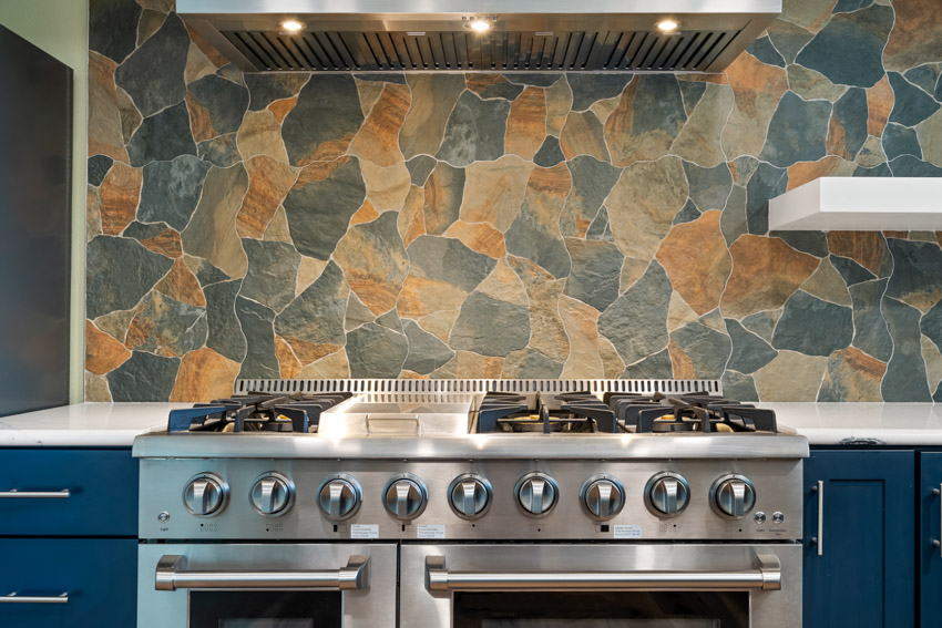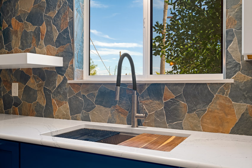 - Natural stone backsplash