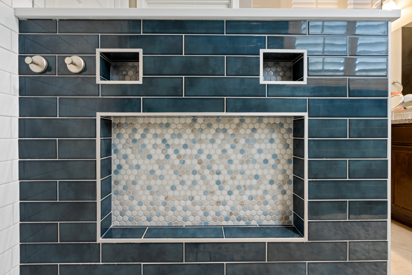 - Mosaic tile flooring and niche inlays