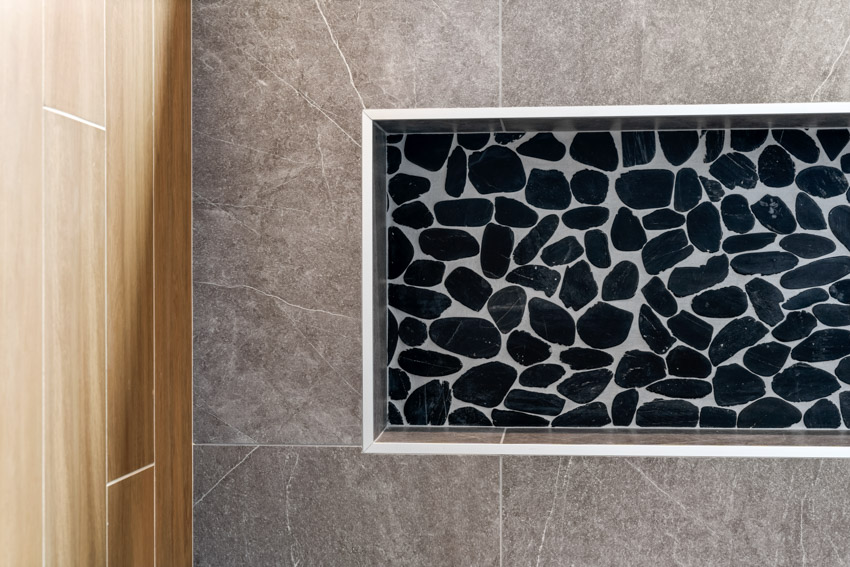 In this bathroom remodeling project by Beloved Built, classic natural elements blend with modern amenities for a spin on a “modern ski lodge” design.
